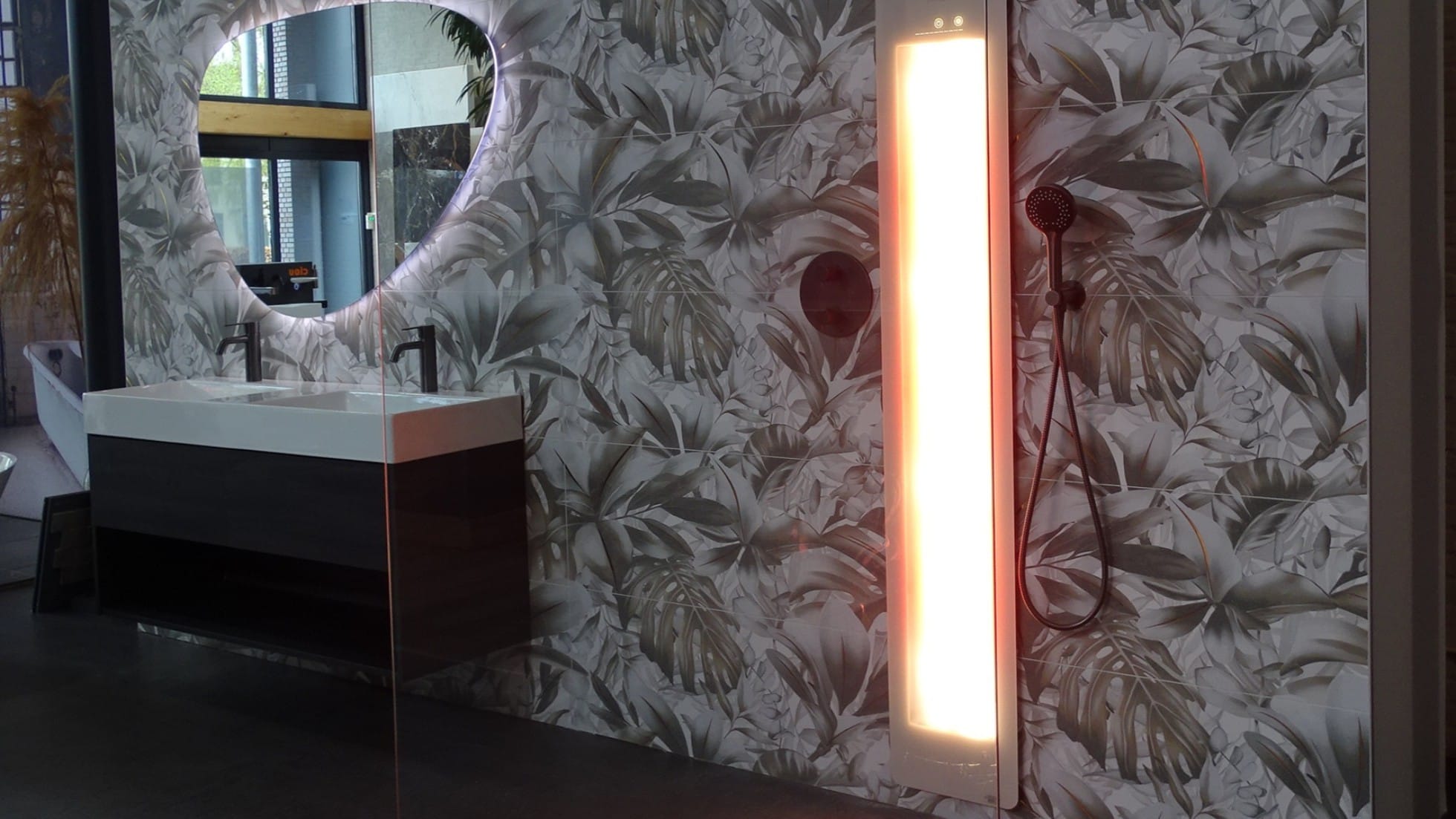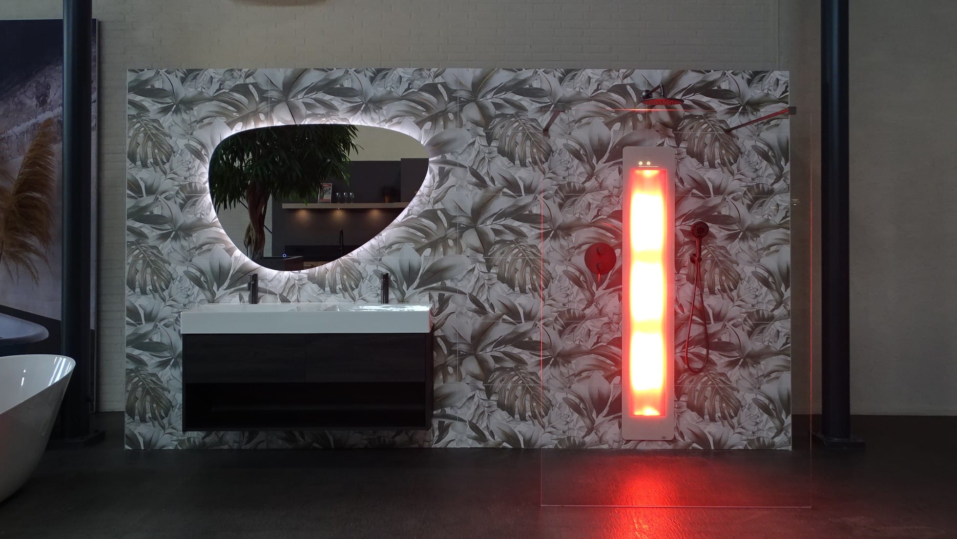 De warme uitstraling van deze badkamer krijgt extra kracht door het comfortabele gevoel van de Sunshower. Hiermee haal je het zomerse gevoel letterlijk naar binnen, elke dag opnieuw. Zonlicht heeft een bewezen positief effect op je energie, stemming en slaapritme. Het infraroodlicht stimuleert de bloedsomloop, helpt bij spierherstel en zorgt voor diepe ontspanning. Zo geniet je het hele jaar door van een weldadig, zonnig moment voor jezelf.