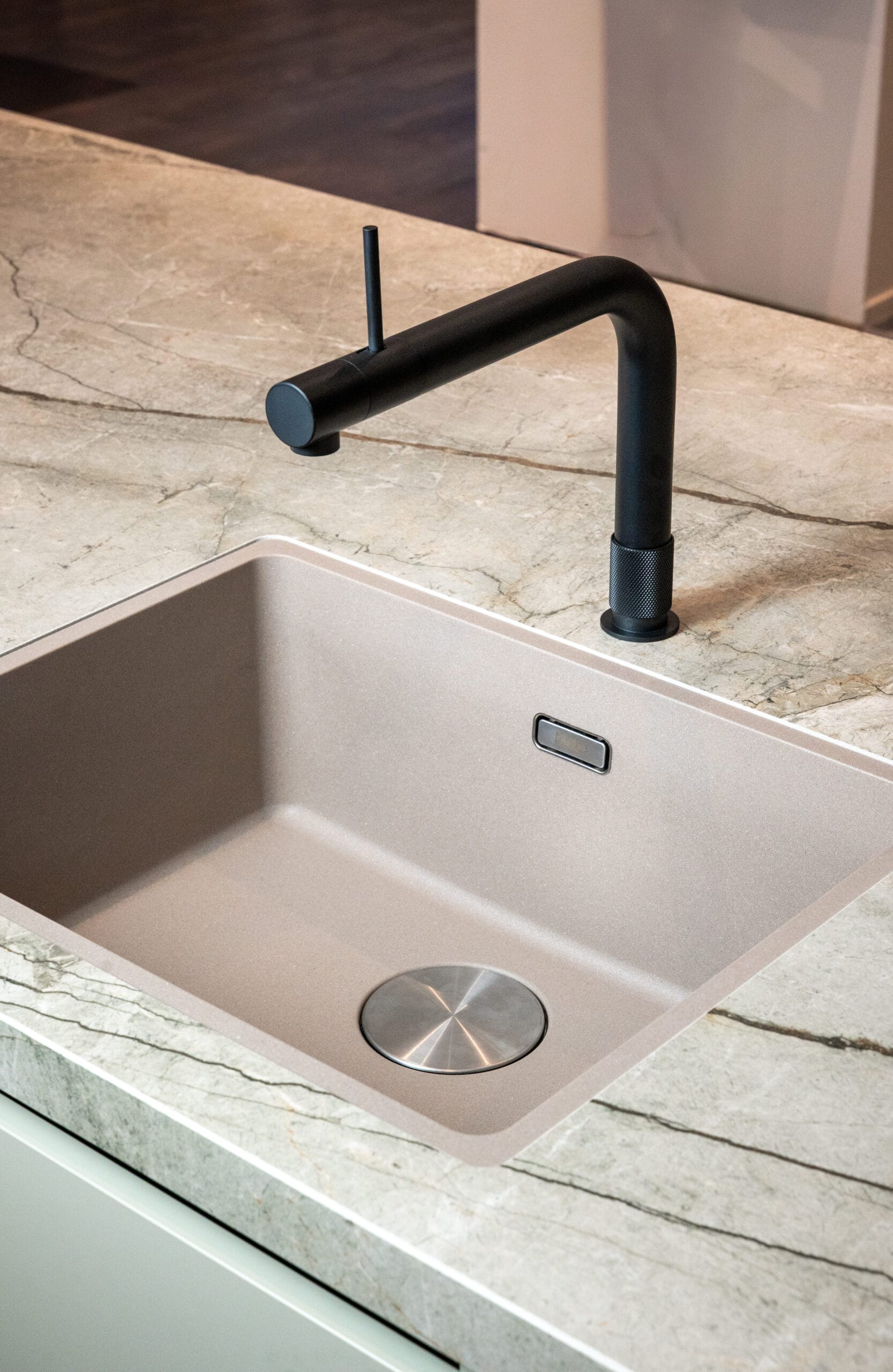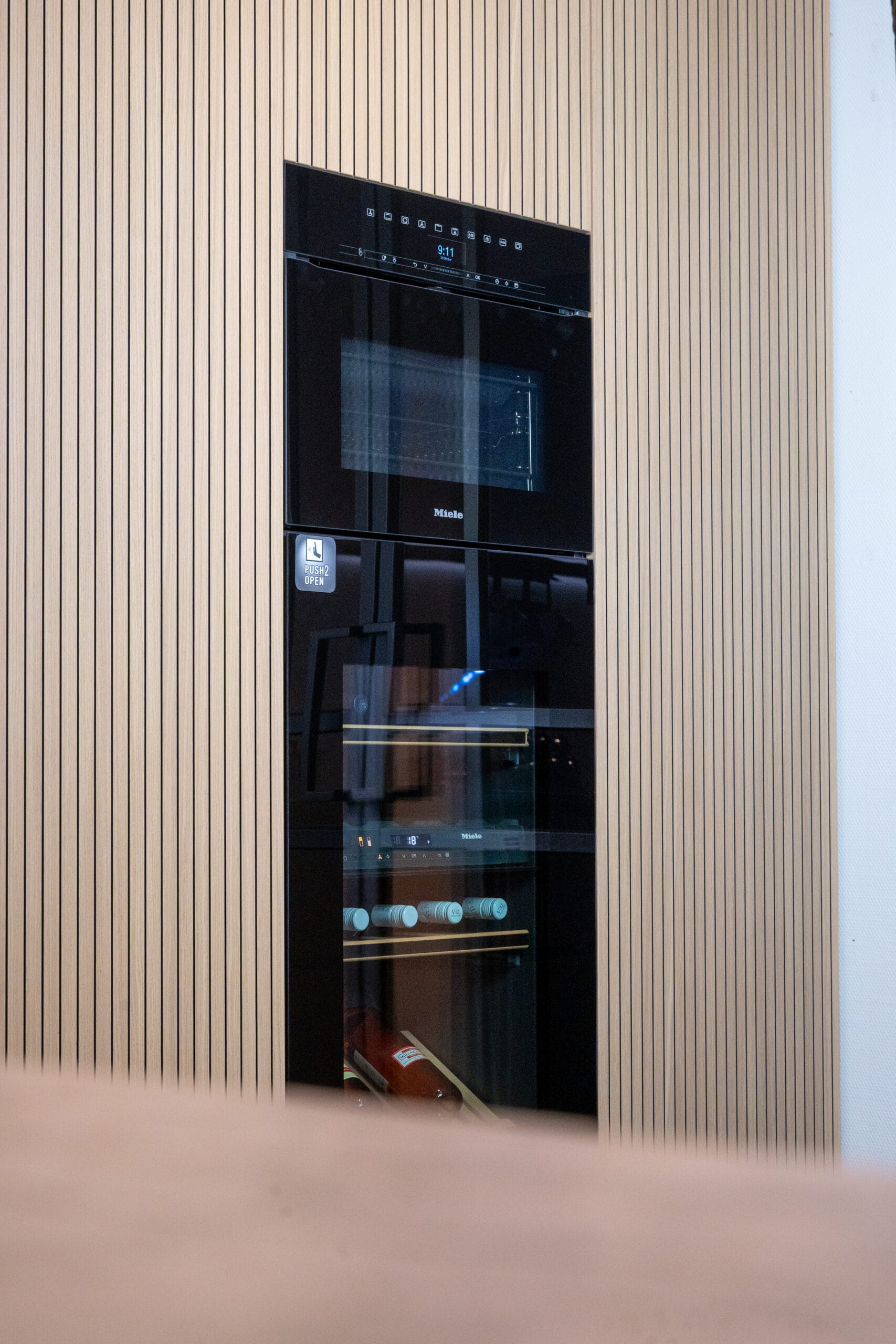 In deze stijlvolle Keller & Beda-keuken komen natuurlijke materialen en moderne vormgeving harmonieus samen. De fronten in Valencia Eiken zorgen voor een warme, rustgevende uitstraling. Het werkblad van keramiek in de kleur Silver Root voegt daar een verfijnde, bijna luxueuze touch aan toe.De open elementen en zachte verlichting brengen sfeer, terwijl de baropstelling uitnodigt tot samenzijn. De keuken straalt rust uit, zonder strak of kil te worden. Dat maakt deze opstelling tot een echte leefkeuken: modern, maar altijd warm.Met de hoogwaardige apparatuur van Miele is deze keuken volledig uitgerust voor dagelijks gemak en kookplezier.Een keuken die niet alleen mooi is om te zien, maar vooral gemaakt is om in te leven.