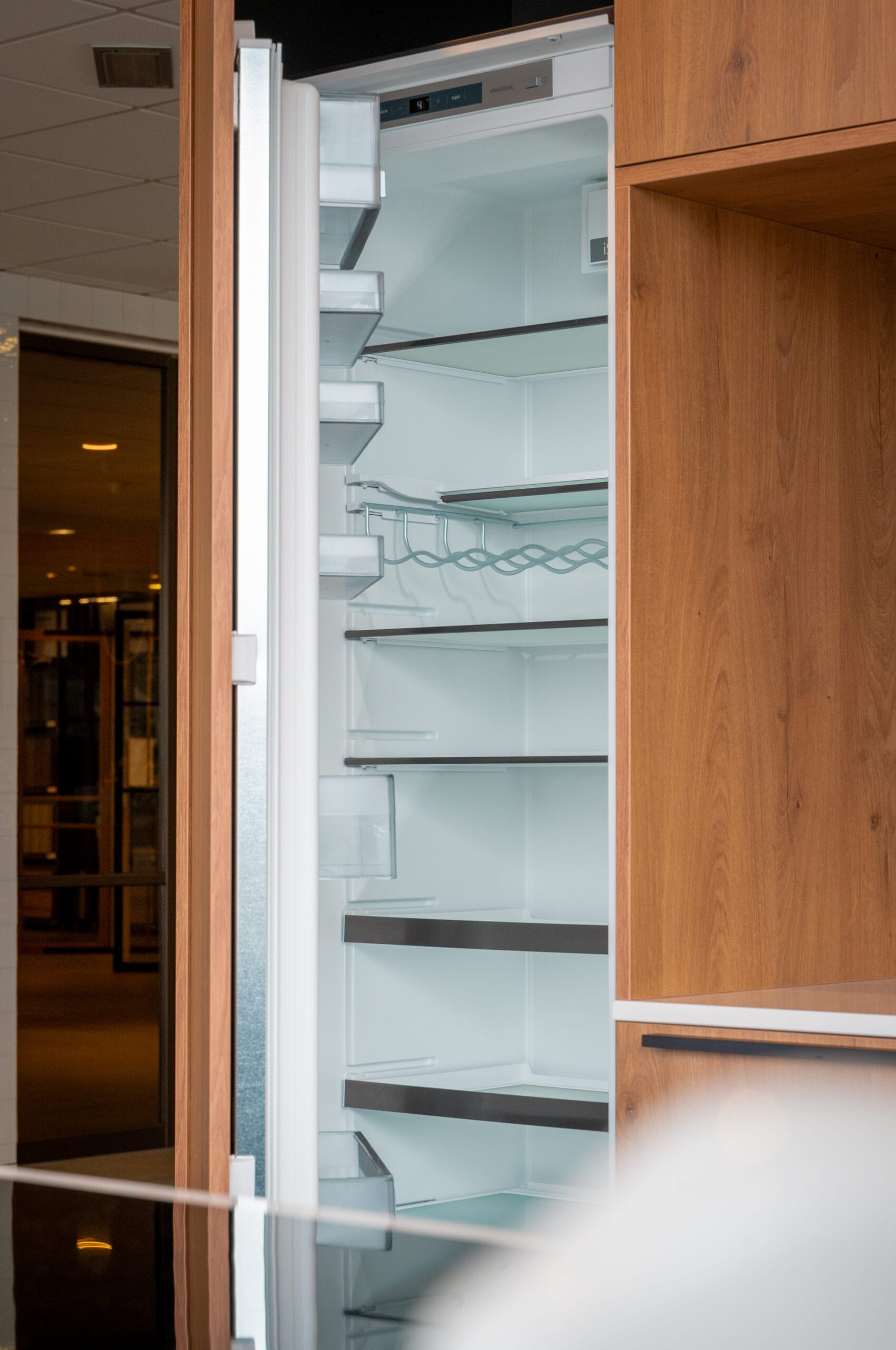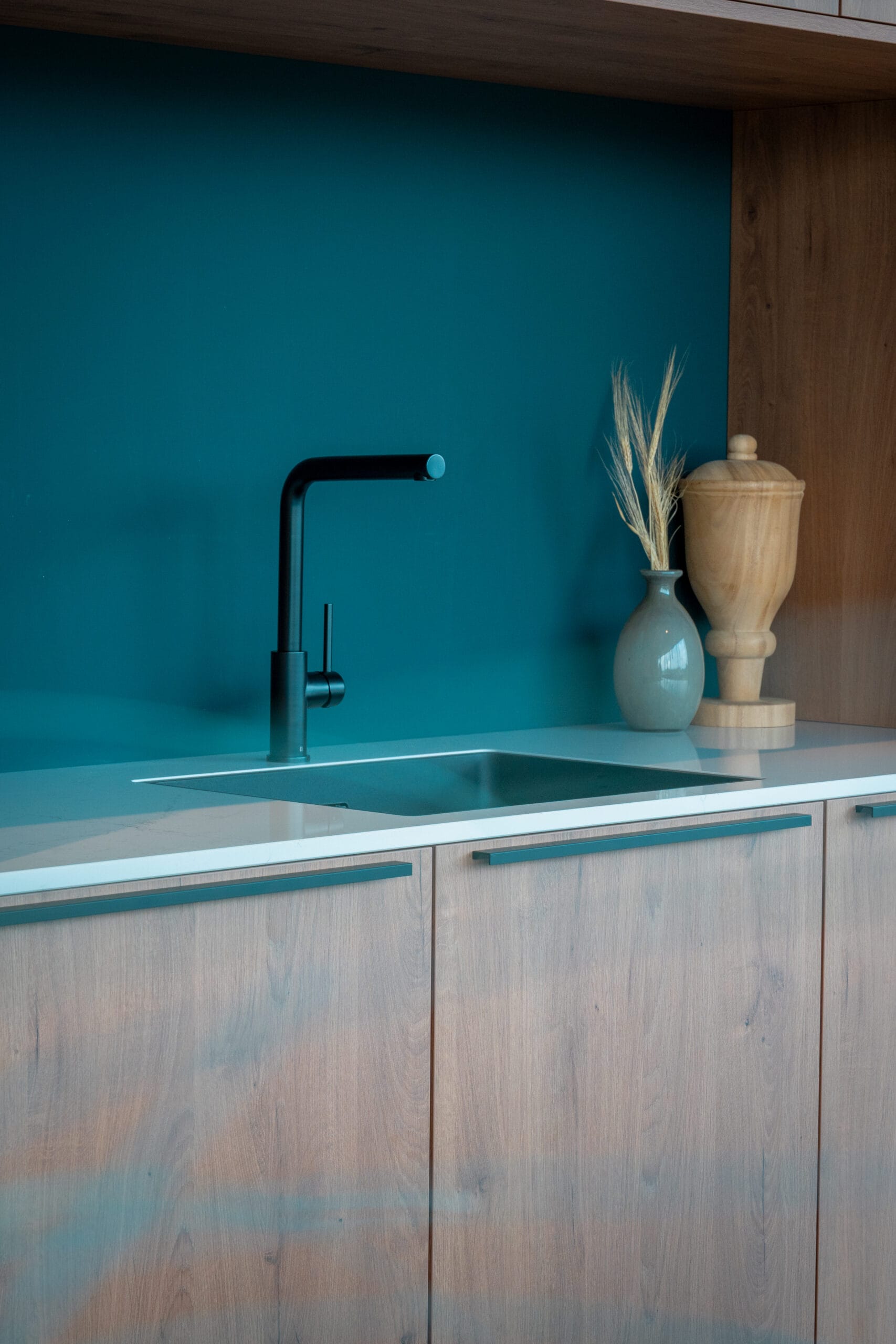 Warmte en sereniteit komen samen in deze elegante Schüller-keuken, uitgevoerd in Victoria noten en diep fluweelblauw. Het natuurlijke houtdecor geeft de ruimte een uitnodigende sfeer, terwijl het fluweelmatte blauw van het eiland zorgt voor een modern accent met karakter.Het gepolijste composiet werkblad in Siberian Frost voegt helderheid en luxe toe aan het geheel. Dankzij doordachte details, zoals de oven aan de zijkant en de verzorgde afwerking van de kopse kant van de hoge kasten, is deze keuken een perfect samenspel van functie en design.Voorzien van hoogwaardige Siemens apparatuur is deze opstelling uitgerust met alle comfort die je mag verwachten. Een keuken die rust uitstraalt, tot in detail klopt en bovenal uitnodigt om in te leven.Benieuwd hoe deze stijl in het echt aanvoelt? We verwelkomen je graag in onze showroom.