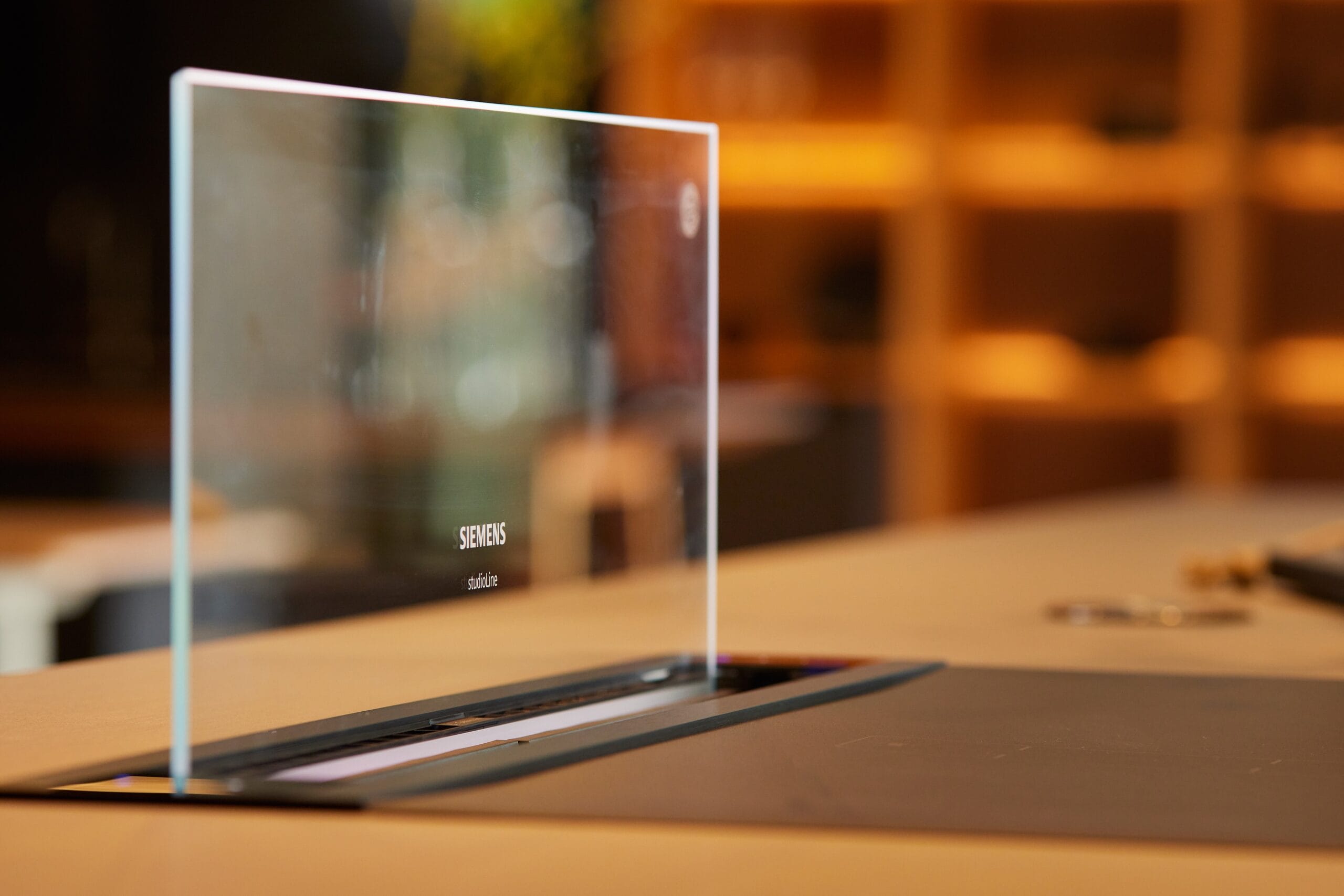 Wat op het eerste gezicht een strak werkblad lijkt, onthult bij gebruik een technisch hoogstandje: de glazen downdraft-afzuiging. Deze moderne afzuigunit schuift automatisch omhoog tijdens het koken en verdwijnt net zo elegant weer in het werkblad zodra hij niet meer nodig is. Een perfecte combinatie van design, innovatie en gebruiksgemak; volledig in lijn met de minimalistische en stijlvolle uitstraling van de keuken.